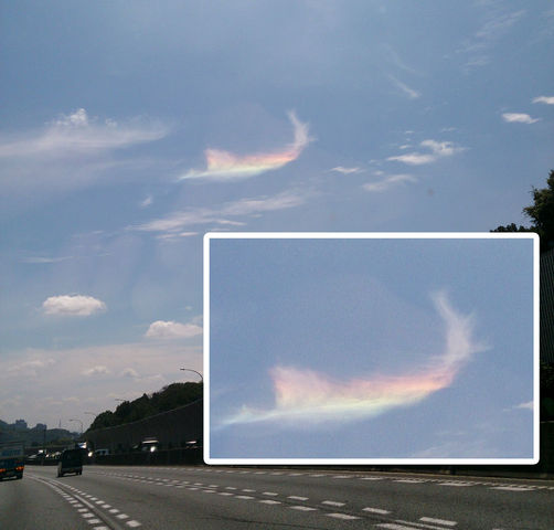 道中、空には珍しい虹色の雲が出ました。当初の予定だと明日の納車だったので、雨が確定的でした。