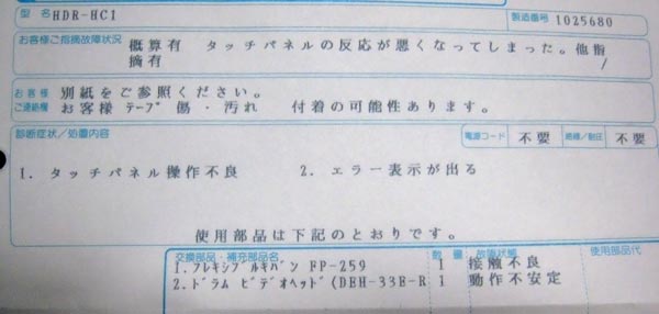 2008年01月29日投稿記事「HDR-HC1修理。」の件ですが、本日帰ってきました。